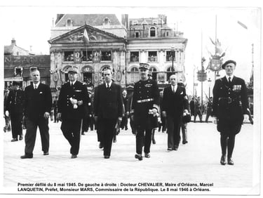 Le 8 mai 1945, les Orléanais fêtent la Victoire en présence de nombreuses personnalités, et de Marcel LANQUETIN, Préfet du Loiret. Il apparait dans la première minute de la vidéo de Pierre VILLIAUME, cinéaste reporter à Orléans.